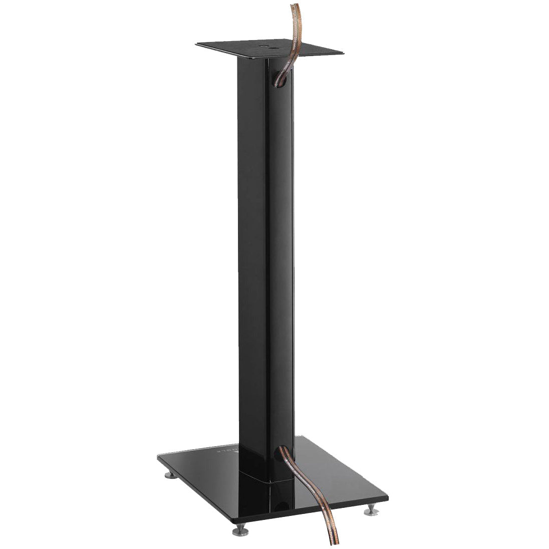 The minimalist aesthetic of this speaker stand features a design link to the high-end series with a solid base in coloured glass matching the finishing of the stand (black or white).